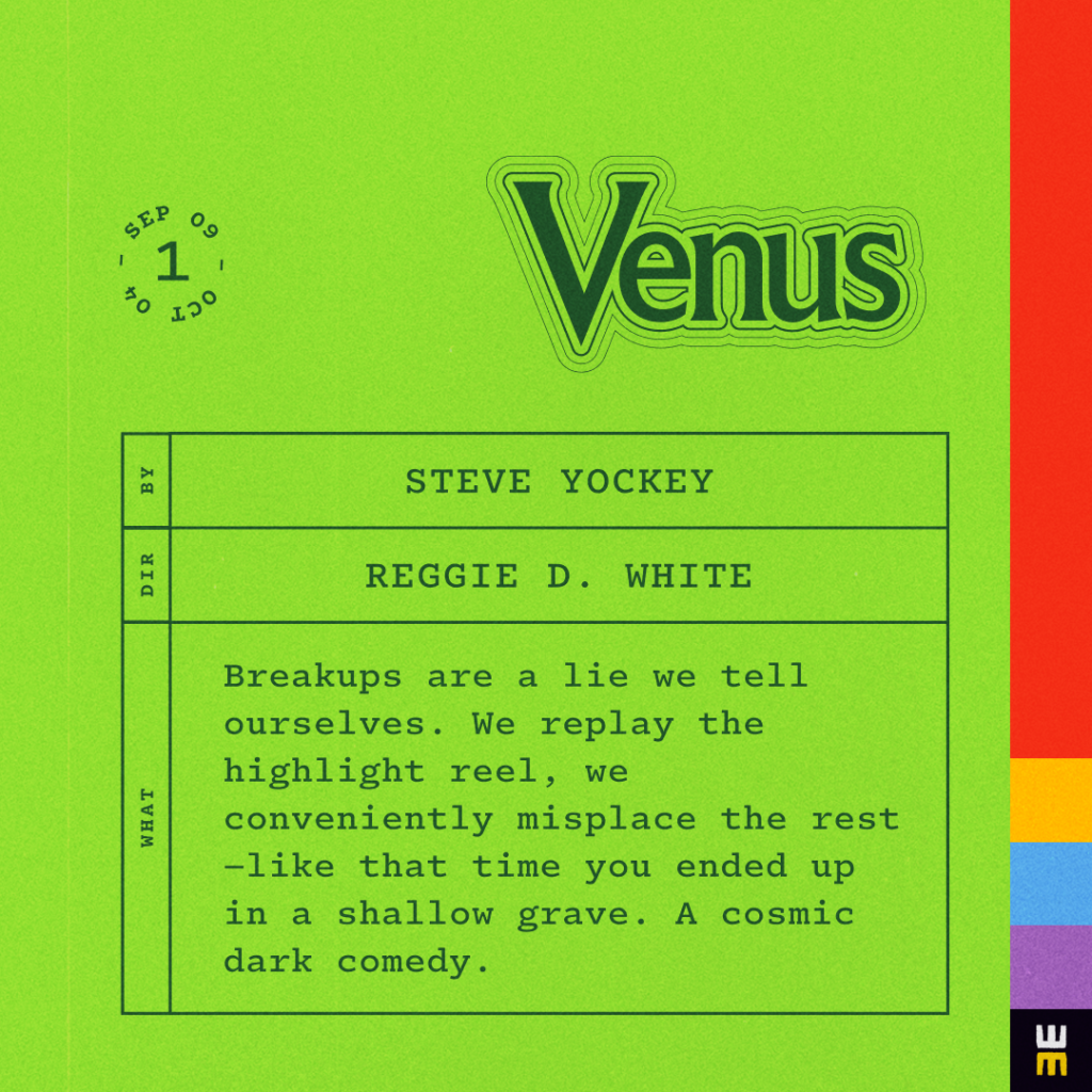 A star-gazing dark comedy, Venus launches the 2026–2027 season with a bang (or a shovel?), as Woolly’s new Artistic Director Reggie D. White helms this celestial fever dream by Steve Yockey (creator of HBO’s The Flight Attendant, Netflix’s Dead Boy Detective).