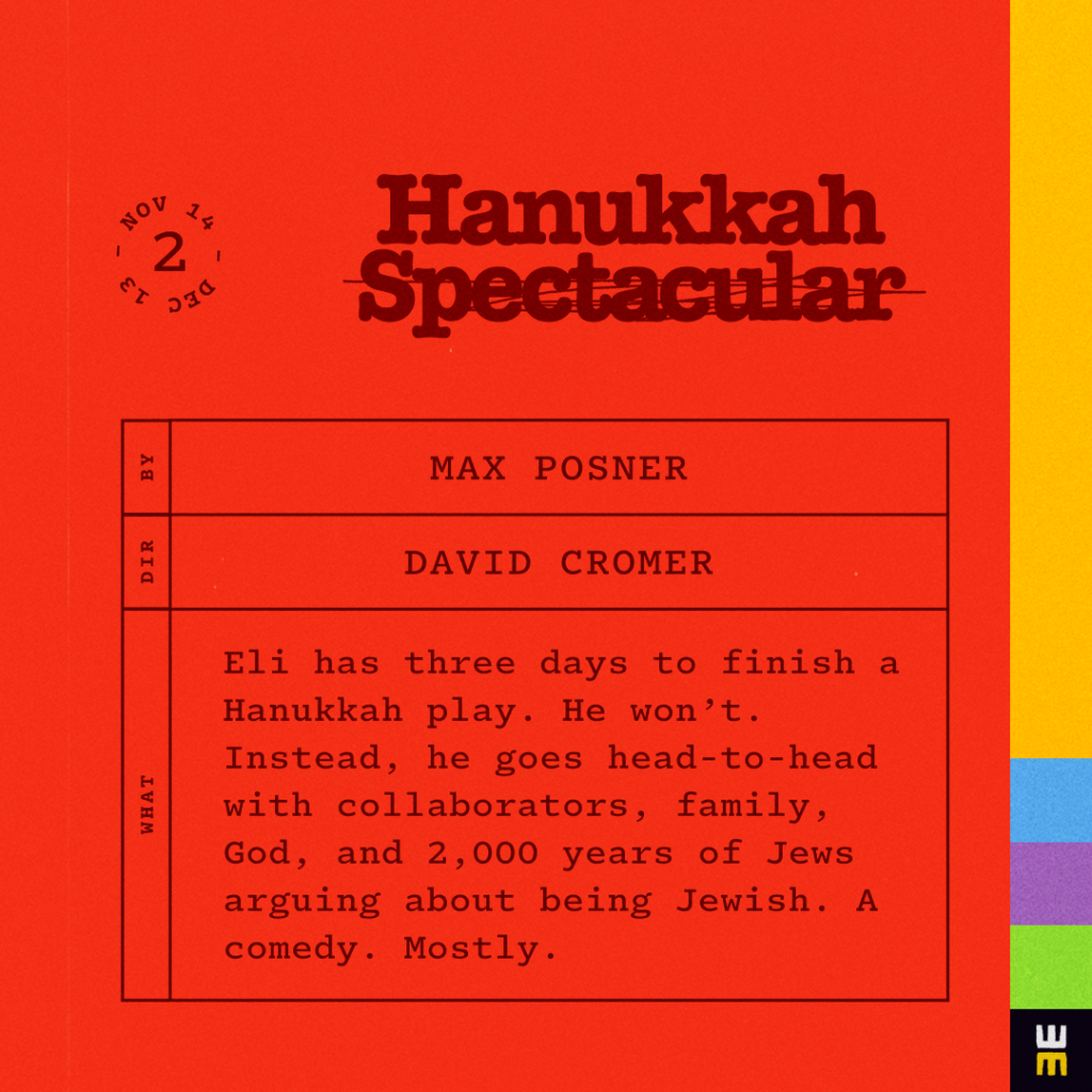 Set over a long weekend in a Midtown talent agency, Hanukkah Spectacular drops us into a glass-walled pressure cooker where a group of Jewish artists attempt the seemingly impossible: to make a commercially viable holiday hit about Hanukkah. What starts as a rehearsal comedy becomes a reckoning as lines between actor and character dissolve, a brother and sister’s unresolved history cracks the room open, a writer’s nervous system short-circuits, and a veteran director discovers his real job: to be the parent nobody cast him as.