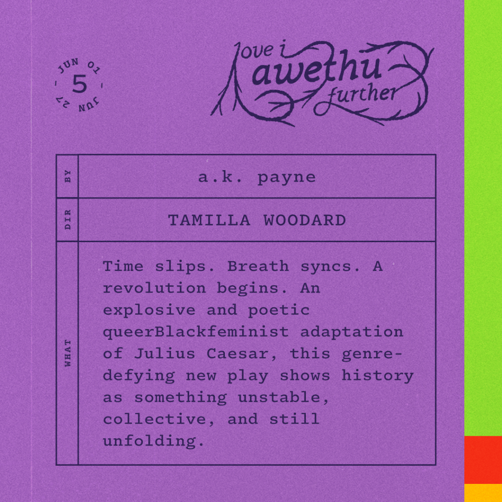 In this explosive and poetic adaptation of Julius Caesar, Susan Smith Blackburn Prize winner a.k. payne (Furlough’s Paradise) defies genre and gender expectations as they show history as something unstable, collective, and still unfolding.
